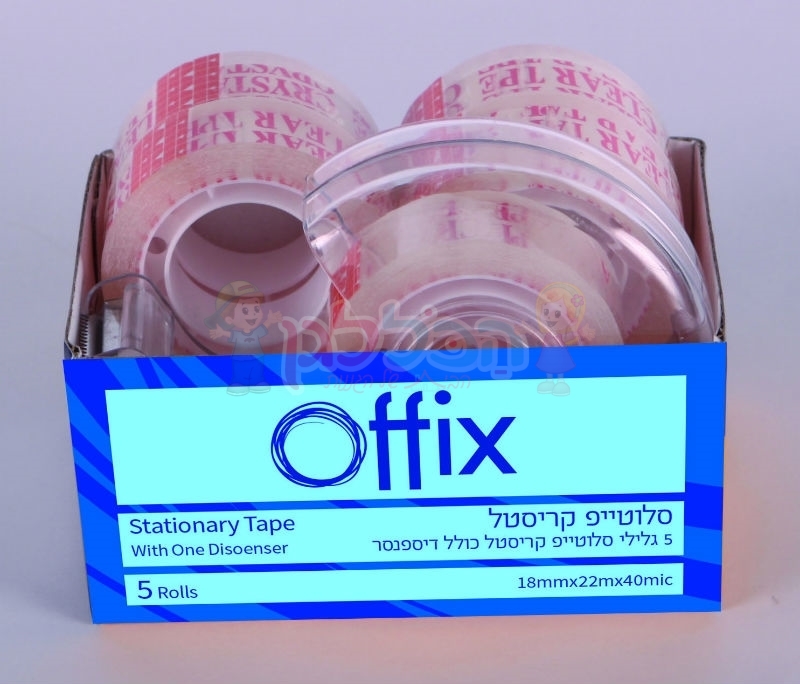 מארז 5 יחי' דבק סלוטייפ קריסטלי+מעמד, אורך: 22 מטר, רוחב:18 מ"מ, 40 מיקרון